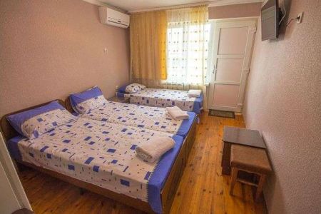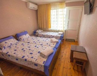 Трехэтажный гостевой дом занимает благоустроенную территорию всего в 460 метрах от пляжа. В распоряжении гостей уютные номера с удобствами. Везде есть душевая комната, плазменный телевизор, холодильник и установлены кондиционеры, спасающие от жары.